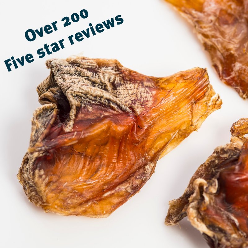 Made of meat, cartilage, and tendon, they are extremely tough and are great for keeping teeth and gums healthy while being a tasty treat that dogs just can’t resist.