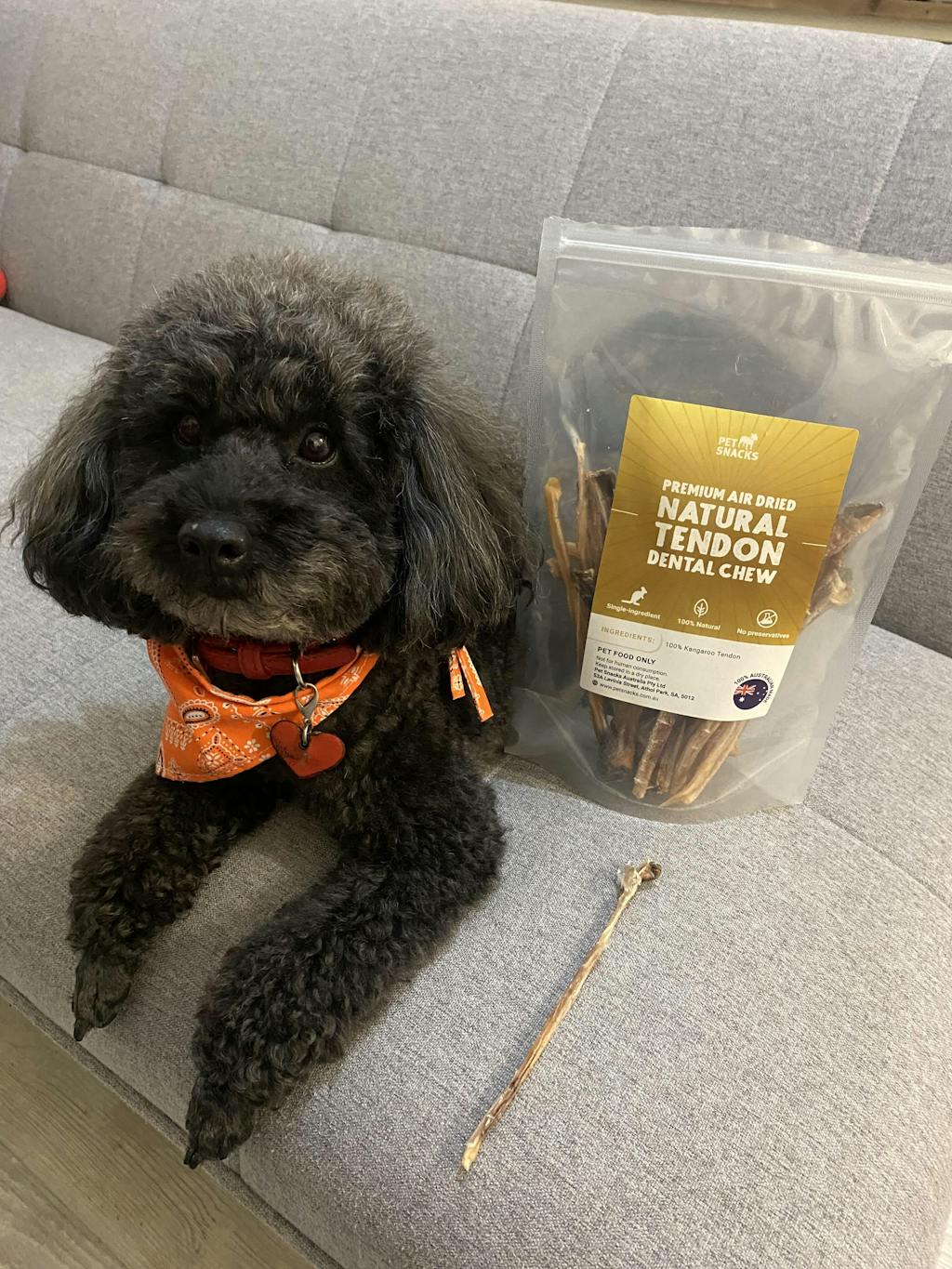 My almost 5-year-old toy poodle is absolutely obsessed with the Natural Tendon Dental Chew! We give him one after his dinner every night—it’s become our little routine. He gets so excited each time he hears the packet. We brush his teeth regularly, but this chew has definitely helped keep his teeth, especially the back ones, much cleaner. It’s a great natural treat that keeps him happy and his teeth healthy! Highly recommend for small dogs who love to chew.